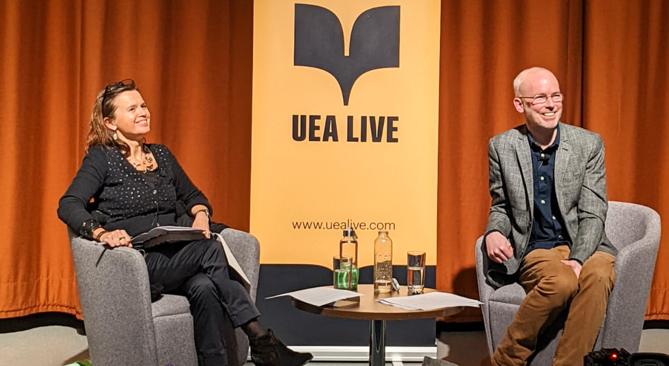 Jon, Professor of Creative Writing at Nottingham University, was joined at the first of the spring season of UEA Live events by UEA Professor Jean McNeil. He opened the talk by saying how good it was to speak to an audience in-person rather than through a laptop, and answer questions from people, not comments posted on the side of the screen. Norfolk is familiar territory for The IMPAC Dublin Literature Prize and Betty Trask Prize winner, who grew up in the county.