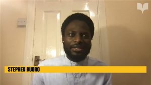 I was excited to hear what this aspiring novelist had to say about his soon to be published work, The Five Sorrowful Mysteries of Andy Africa. Foden prompted him to talk about the roles of animism and Afrofuturism in his novel. I found it enlightening to hear Buoro explain how these philosophical concepts had always interested him in his writing. It wasn’t until he created the character of Andy that he could find a way to bring all these ideas into focus. “The character opened up many different opportunities for intertextuality.” He goes on to explain how his character is constantly learning, ever curious about the world around him, and this allows him to confront different world perspectives on African culture. As Andy begins to explore a Eurocentric, western view of Africa, Buoro can bring into question where we form our beliefs and why. “The book examines the whole sphere of Andy’s existence and beliefs.”