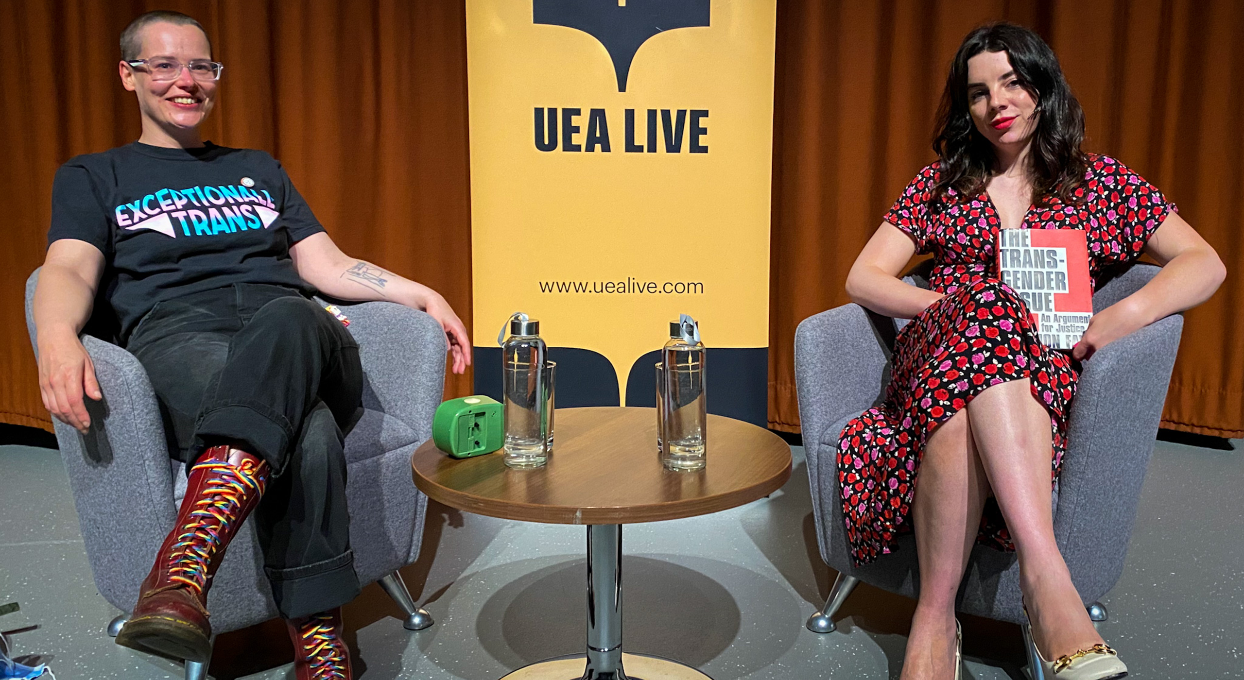 Faye decided that she wanted to write The Transgender Issue around the time that she became a freelance writer a few years ago when trans visibility was on the rise as she felt “a moral obligation”. She explained to the audience that the idea stemmed from a conversation with her manager where she was essentially ranting about the hostility in the conversation around trans people at the time, as people who are not trans would constantly talk about ‘the transgender issue’ without ever addressing “the complexity of trans lives”.[1] There has been a representation of trans people as a joke throughout film and media history, so Faye explains that when more people started being open about their identity the media realised that they could no longer present this community as a joke. This led to a “moral panic” painting trans people as aggressors to be feared and causing trans people to have to fight to keep what little rights they do have. The Transgender Issue, then, is a text that is intended to create clarity about the depth of the issues that trans people do have, and Faye uses facts alongside the lived experiences of several trans people to do this.